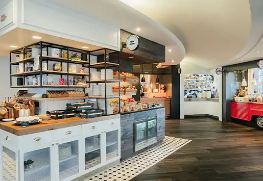 With an arcade game corner, cosy film area and foosball for older kids, and cartoons and giant colouring-in pictures for littler kids, you can relax and enjoy special times in the bar area with your family, friends and colleagues.